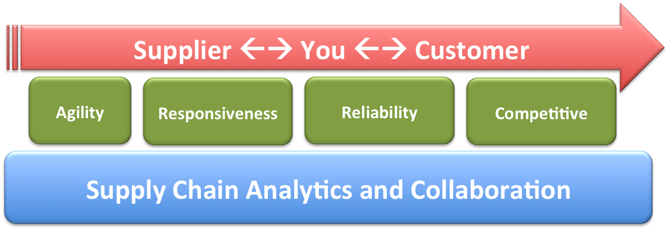 want timely delivery of goods and services with quality. So if you would have worked with your marketing team, you would be able to re-organize your network and inventory position to match those promotions in a cost effective way while delivering on price, time and quality. Although it might sound like you do it already, I would bet No! Key is how quickly can you re-organize for the next promotion while maintaining competitiveness and leadership in consumer demand. This is just one use case amongst hundreds but all predicated on Analytics and Collaboration.